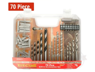 DRILL BIT AND ACCESSORY SET 70PC IN PLASTIC CARRY CASE